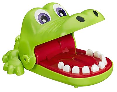 - Erwischt ein Spieler den schmerzenden Zahn, schnappt das Krokodil-Maul zu