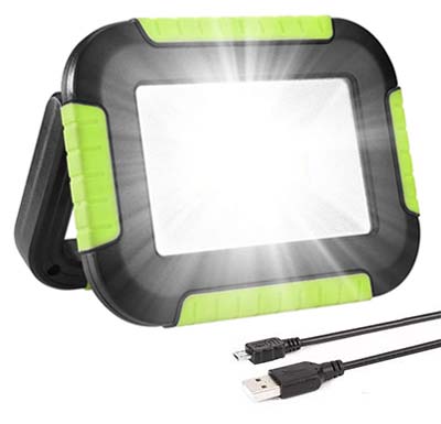 Der klappbare Haltegriff ist arretierbar und dient gleichzeitig als Ständer. Dadurch ist die Arbeitsleuchte nicht nur eine nützliche Standlampe zur Ausleuchtung einer Baustelle, sondern kann auch in die Hand genommen und als Taschenlampe zur näheren Beleuchtung einer bestimmten Region genutzt werden. Die LED-Arbeitslampe ist nicht nur eine praktische Baustellenleuchte für Handwerker und Heimwerker, sondern auch eine hilfreiche Werkstattleuchte für Autoschrauber.